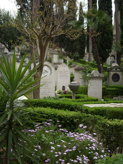 3) the Protestant Cemetery in Rome, with surely the most lovingly maintained flowers and plantings, and the most elegant tombstones (the travel writer H. V. Morton thought it was the most beautiful in the world)